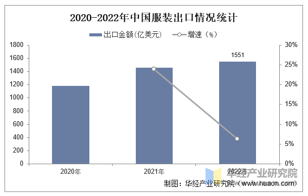 从出口环境来看, 2022年的中国服拆出口金额为1551亿美元,同比增加6。4%,但较2021岁尾的增速有所放缓。