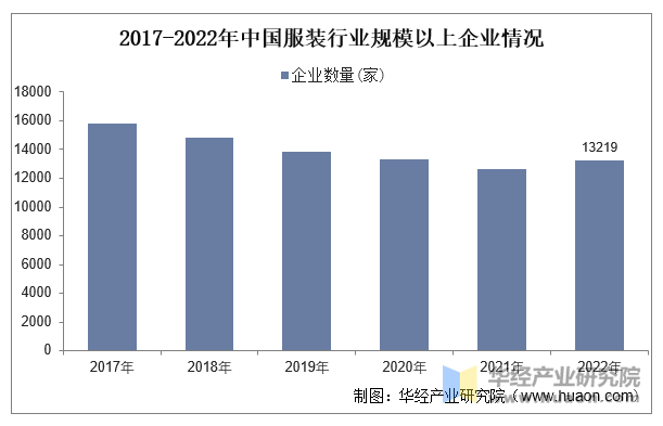 2017至2021年期间,我国的服拆行业规模以上企业逐年削减;2022年,中国服拆行业规模以上企业为13219家,较上年添加了566家,同比增加4。5%。