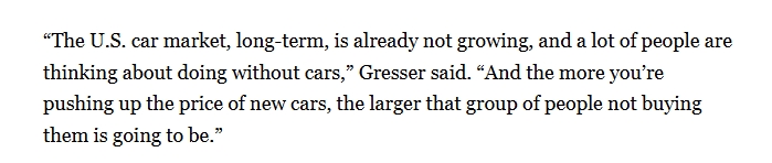 “从持久来看,美国汽车市场已不再增加,越是推高新车价钱,不买车的人就会越多。”美国《》旧事网报道截图。